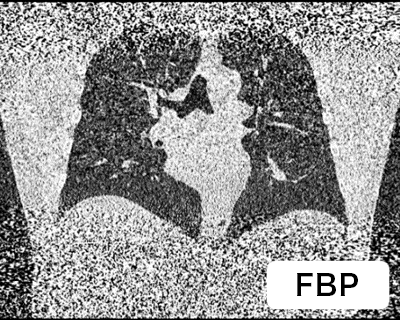 この技術を利用することで、レントゲンとほぼ同等の線量で超低被ばく胸部CT検診が可能になりました。